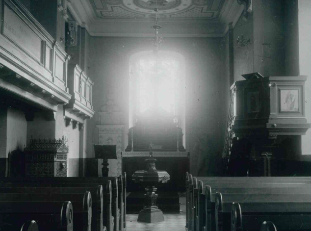 Ausbau von Altar, Gestühl und Kanzel.